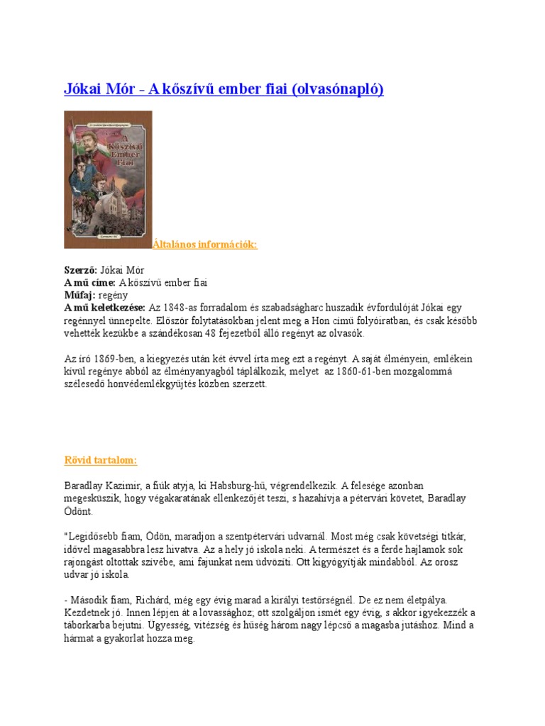 Jokai Mor A Koszivu Ember Fiai 1 25 Fejezet Olvasonaplo Olvasonaplopo