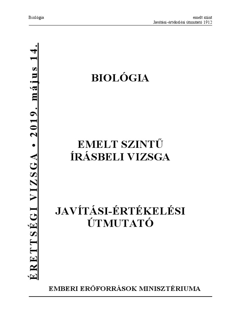 Biologiaerettsegi Emelt Szint 2019 Megoldokulcs